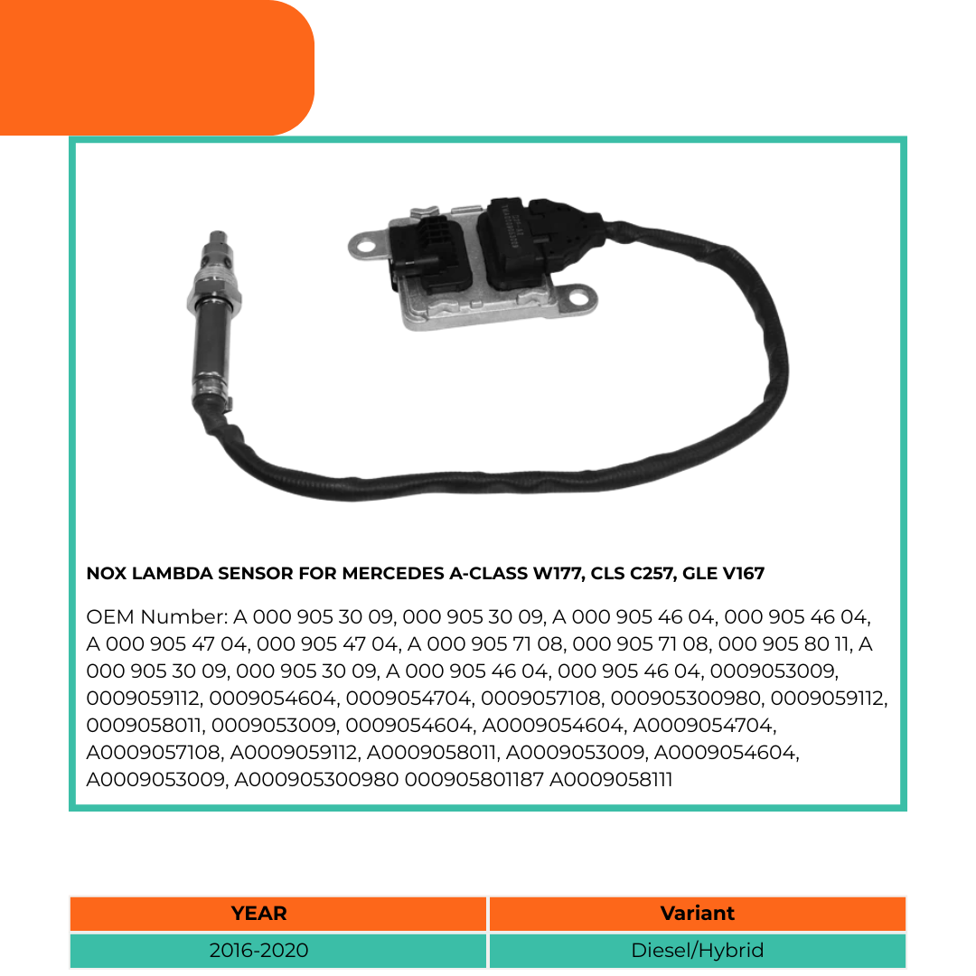 This NOX Lambda Sensor is OEM quality, reliable aftermarket car part Fits Mercedes-Benz: A-Class, CLS, E-Class, E-Class ALL-Terrain, E-Class T-Model, GLE, Sprinter.