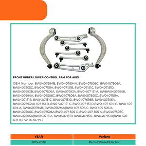 All our control arms, suspension rods & components are OEM quality and reliable after-market car parts. This Front Upper Lower Control Arm For Audi is specifically compatible with Audi A4, A4 Allroad, and A5.
