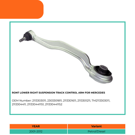 All our control arms, suspension rods & components are OEM quality and reliable after market car parts. This Front Lower Right Suspension Track Control Arm For Mercedes is specifically compatible with Mercedes-Benz CLS, E-Class, E-Class T-Model, SL.