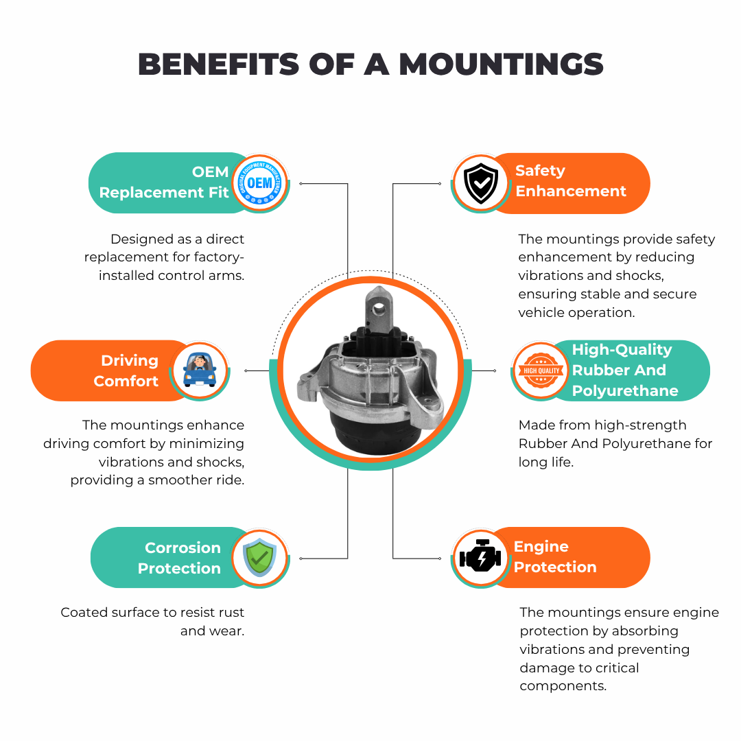 All our engine mounts & hardware are OEM quality and reliable aftermarket car parts. This front left engine mounting mount for BMW is specifically compatible with BMW: 5 Series, 6 Series, 7 Series.