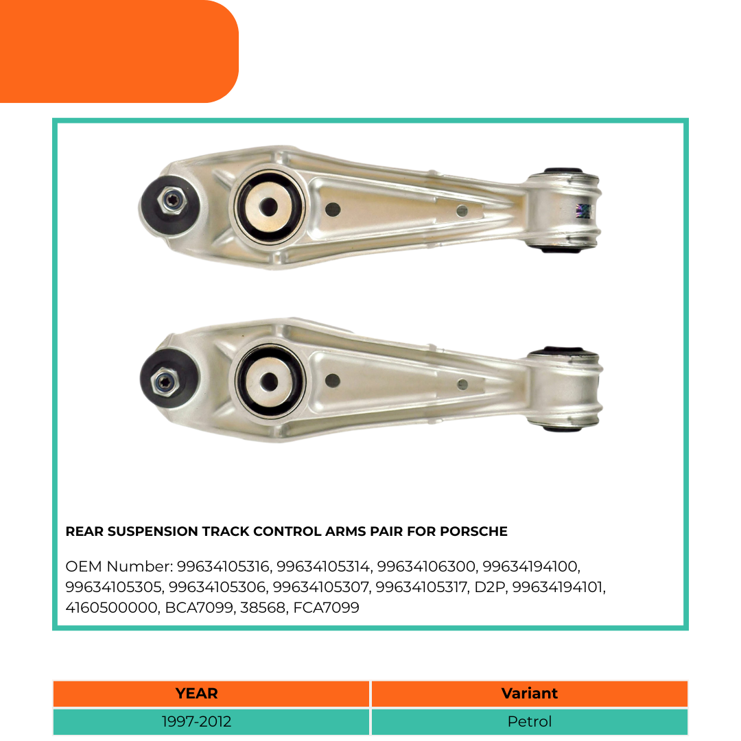 All our control arms, suspension rods & components are OEM quality and reliable after market car parts. This Rear Suspension Track Control Arms Pair For Porsche is specifically compatible with Porsche 911, 911 Targa, Boxster, Boxster Spyder, Cayman.