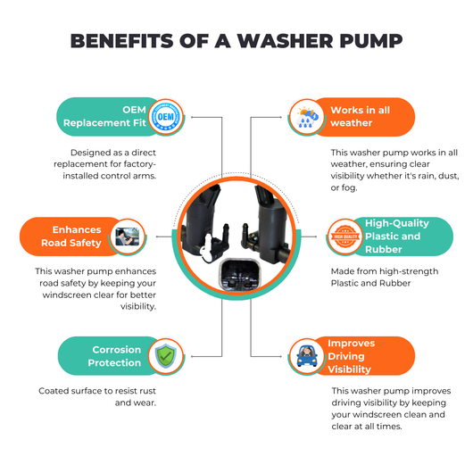 All our window components are OEM quality and reliable after market car parts. This Twin Outlet Windscreen Washer Pump For Citroen/Ford/Volvo is specifically compatible with Citroen C5, Ford C-Max, Focus MK2, MK3, Focus C-Max, Galaxy, Mondeo, Mondeo Turnier, S-Max, Volvo C30, V50, V70, XC70, XC70 Cross Country.
